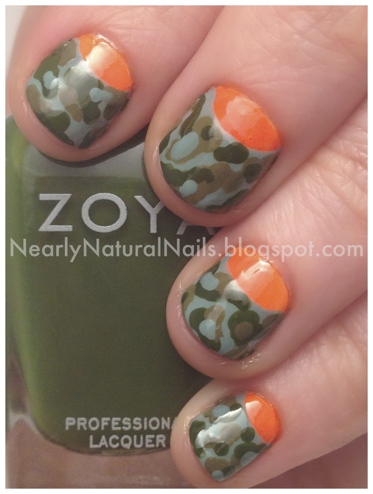 Camo and Orange Nail Designs