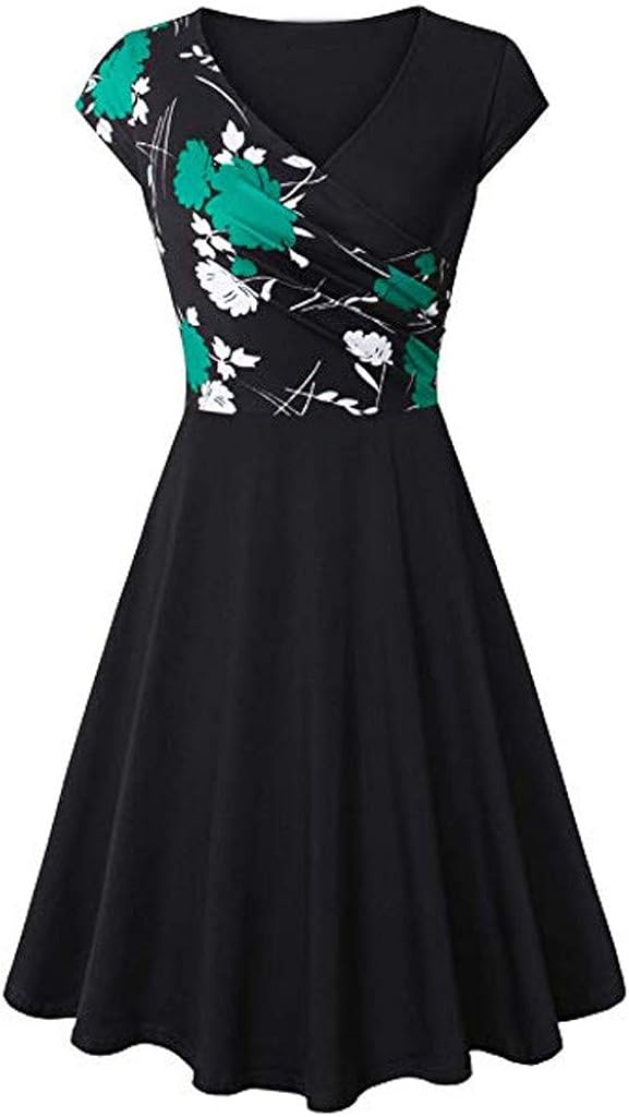 Kurzarmliges Kleid Mit V Ausschnitt Swing Kleider Damen Kleid Pottoa Frauen Elegantes Ausgestelltes Kleid Mit A Linie Knielang Etuikleid Mit Stretch Partykleid Damen Bekleidung Suenaacampo Com